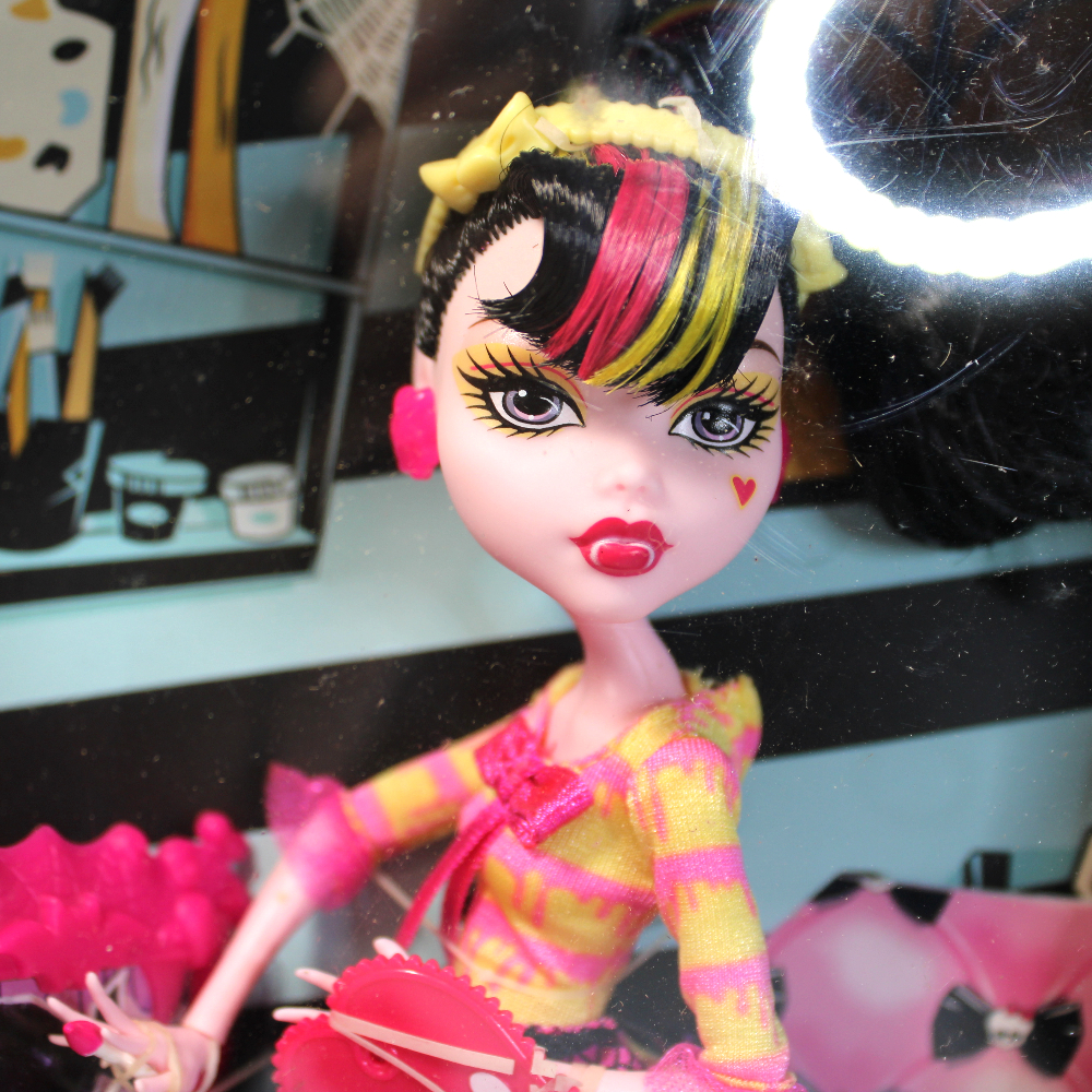 NEVER REMOVED FROM BOX, G1 ORIGINAL GENERATION. This Draculaura (Daughter of Dracula) wants to paint a self-portrait in art class – but can’t see her own reflection! What should she do?