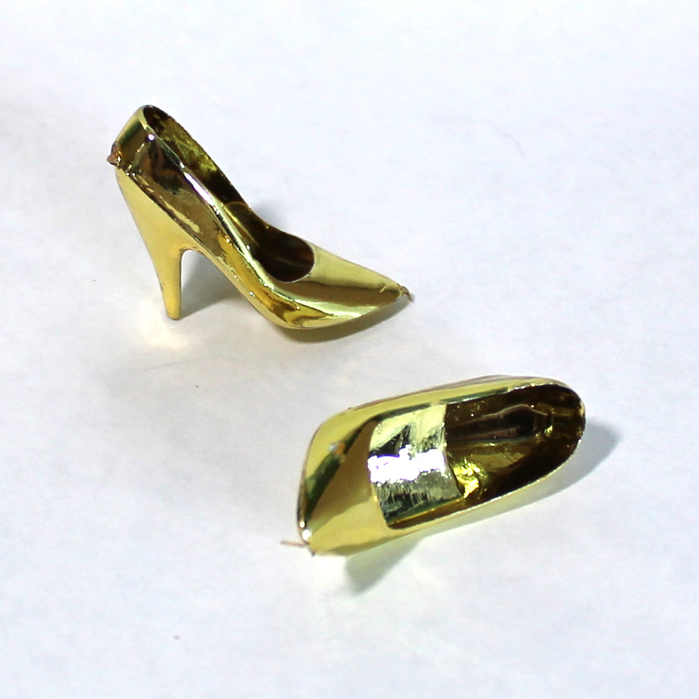These sleekly designed classic slip-on dress pumps came from an Integrity Candi doll (a legacy competitor to Mattel Barbie before Integrity ventured into high-end collector fashion dolls). The front foot opening is slightly rounded to fit the wider and slightly shorter rubbery vinyl Candi/Janay foot. This means that, while they may fit a variety of standard fashion dolls of the day, including Mattel TNT and rubbery-leg belly-button dolls, they don’t necessarily fit hard vinyl feet like jointed high-heel or belly-button articulated dolls. Good news is, they do fit standard made-to-move dolls pretty well, as shown. The fit is snug but not too tight, so shoes don’t fall off – “Just right,” as Goldilocks would say.