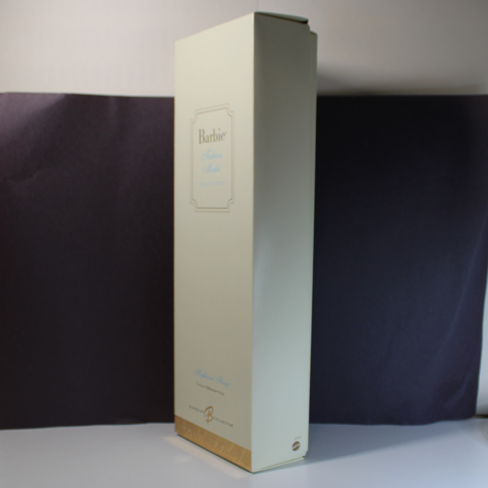 - PACKAGING – This doll comes new, never removed from box, in her original retail lift-top Silkstone box, tied securely inside with ribbons. Center-part tissue paper covers the contents. A gold ribbon and branded tag secure the contents. The box is perfect except for two tiny nicks – one on front top edge, and one on left front edge.