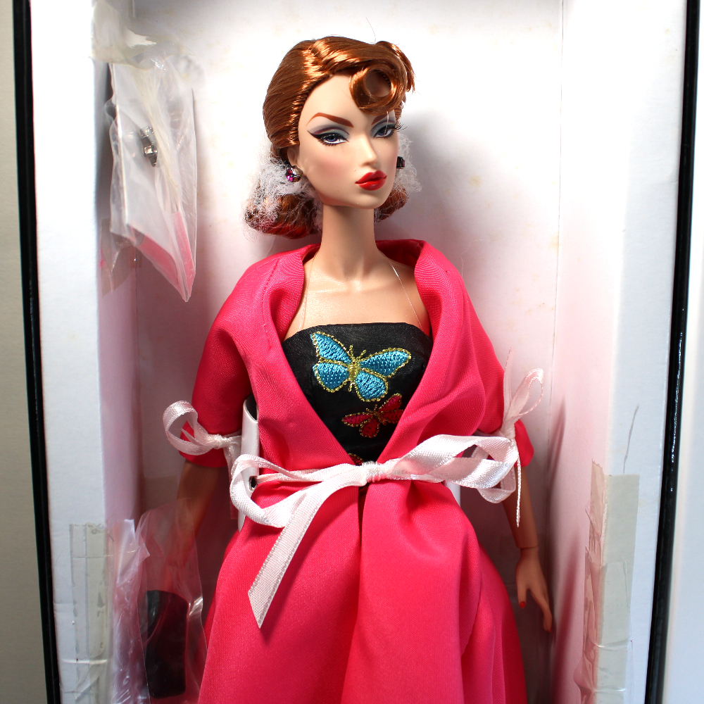 NEVER REMOVED FROM BOX. Integrity Toys introduced the doll character Victoire Roux as a post-WWII widely traveled French model who played a huge role in rejuvenating upscale style in the fashion scene. This Victoire is styled to represent late 1940’s French couture that might have been worn while visiting Avenue des Champs-Élysées, Paris’s iconic, tree-lined avenue stretching from the east end’s Place de la Concorde to the west end’s Arc de Triomphe, known for luxury shopping, theaters, cafés, and major events. This Victoire has sultry blue eyes with applied lashes and soft dark reddish lip color. Her short reddish straight hair is styled in a side part with two large spiral curls in front and side, with the bulk of her hair loosely secured at the back of her neck. She comes brand new in box, never removed. Her body style is similar in height and proportion to Dynamite Girls and Poppy Parker, but with a slightly larger bust. She can wear many fashions styled for Silkstone, as well as fashions for a variety of other dolls, especially early Fashion Royalty. Her clothing and accessories include: